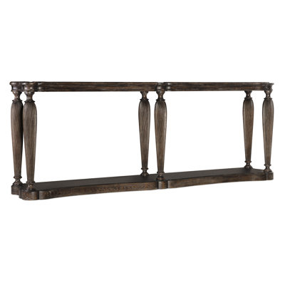 Create an accountInspired by antiques and the architecture of vintage characters, the Traditions console table has a twist leg design and scroll motif on top. Crafted of pine veneers with a solid-wood edge top, the table is finished in Maduro, a rich brown with gray undertones. Featuring a slim 16-inch depth and one fixed shelf, it can add style even to tight spaces. Inspired by a two-week trip through Europe in search of architecture and antiques full of vintage characters, Hooker Furniture introduces the Traditions collection. Targeting a design-oriented consumer with a sophisticated style, the whole home collection – one of the largest in company history – uses familiar forms to present a nostalgic, yet comfortable aesthetic. Layered with fresh elements, the group offers an updated presentation that speaks to a storied past, yet easily transitions into today’s interiors.
