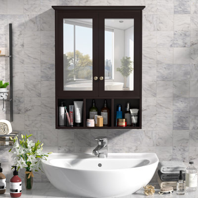 Create an accountThis product has 2 mirror doors and silver metal handle knobs that make it easy to open and close. This cabinet is stable and durable combined with modern style and large storage space for a bathroom, kitchen, or elsewhere.