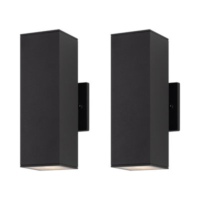 Create an accountModern outdoor porch light patio light in 2 lights with aluminum rectangular tube and tempered glass cover waterproof wall sconce 2 pack. Perfect to work as a pair, these outdoor wall sconces provide a warm welcoming light. Add these by your garage door, back entryway, or anywhere you need light outside your home. The black matte finishes and seeded clear glass shade are a perfect combination of classic and modern and will blend well with any decor. Add a compatible dimmer switch and bulb to create the perfect outside atmosphere. Includes all mounting hardware for quick and easy installation and requires two medium-based bulbs max. 60w.