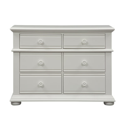 Create an accountThis 6-drawer double dresser blends convenient storage with classic, coastal style. Crafted from solid and engineered wood, this dresser features dovetail joinery and pine and MDF elements. Intricate molding highlights the top, base, and drawer fronts, while round drawer pulls add a geometric element. We love that this dresser offers plenty of room to store your clothes, accessories, intimates, and pajamas – with room up top for an accent lamp or a decorative display. Plus, its oyster white finish makes it a great fit in cottage and French country aesthetics.