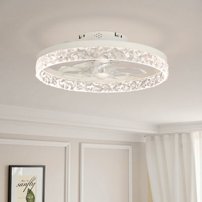 Create an accountThis 20-inch flush mount ceiling fan with light fuses sophisticated design and intelligent functionality for contemporary homes. Boasting a robust metal frame with a crystal-inspired acrylic rim, it serves as a luminous, refined focal point. Equipped with seven transparent blades and a reversible DC motor, it delivers ultra-quiet, steady airflow across 6 adjustable speeds. The integrated 52W LED offers stepless dimming and 3 color temperatures (3000K-6000K) for personalized illumination. Streamlined control via remote or app simplifies wind, light, and timer adjustments, complemented by night light and memory functions. Ideal for bedrooms, dining rooms, and compact living spaces, this all-in-one solution harmonizes timeless style, optimal comfort, and smart technology.