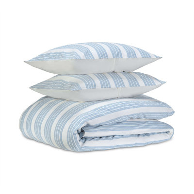 Create an accountThis duvet cover and sham set features a classic mix of chambray stripes, tonal pinstripe dots, and running stitches, and reverses to a solid percale with knife-edge seams. Woven from yarn-dyed combed cotton for long-lasting color, this bedding will continue to soften with repeated washing and wear.