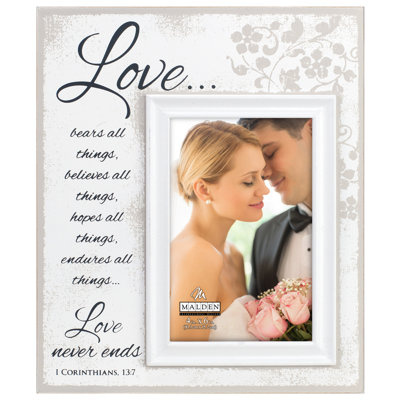 Create an accountDisplay your favorite wedding photo that showcases your "Love" in this silkscreened pattern on white wood profile and inner border frame.