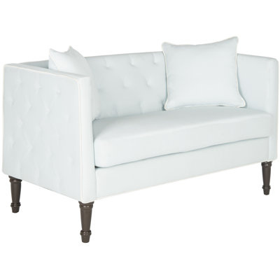 Create an accountShowcasing clean lines and turned legs, this settee brings classic character to your living room or master bedroom. Its square-armed frame is padded with foam. Tufted accents and nailhead trim adorn this settee to offer a touch of texture and subtle shimmer, while two matching toss pillows complete the look with even more dimension. Down below, it features four traditional turned legs finished in a neutral hue. Hand-curated by Kelly Clarkson.