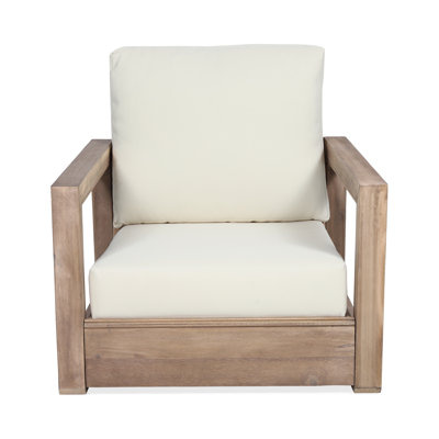 Create an accountA cozy retreat awaits. Featuring a sturdy acacia wood frame and an open sled design, our club chair is both practical and pleasing. Its seating rests directly on the floor to help improve body posture, while its plush cushions invite plenty of comforts so you can relax. Use this versatile chair to style your backyard into one that you'll love.