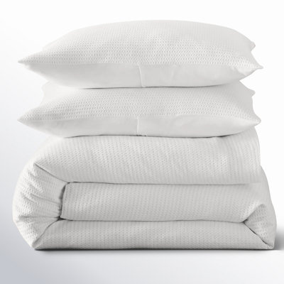 This 3-piece duvet cover set creates a cozy and inviting space in your bedroom so you can rest and recharge. The set includes a duvet cover and two matching pillow shams, all featuring a waffle weave design for a textured and understated look. We love that it comes in a variety of colors to choose from for a well-curated room. The duvet cover is designed with corner ties to keep your duvet insert securely in place, and it has a button closure for easy removal and cleaning.