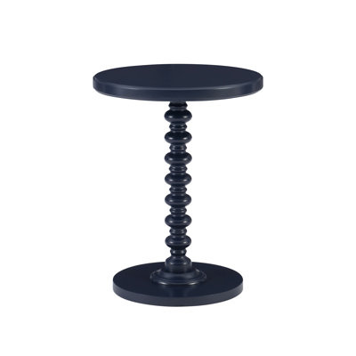 Create an accountA stage that offers style all on its own, this end table is equally eye-catching beside your sofa or acting as a nightstand in the master suite. Founded atop a pedestal base with a turned neck and circular top, its frame is crafted from wood and finished with a solid tone. Add on a gleaming lamp to make your ensemble shine, or use it to put a vase of vibrant blooms on display.