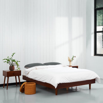 Create an accountThe "FLY" Bed Frame: It's all about the elegant wooden frame hanging above the study's solid wooden legs. This special design makes it look light and gives it the feeling of floating effortlessly in the air.