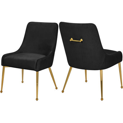 Create an accountElegance invades your dining room when you add this Ace velvet dining chair to the mix. This beautiful chair features the bells and whistles you need to take your dining room to the next level decoratively. The chair is outfitted in soft velvet upholstery with a pleated design for added textural appeal. Polished gold legs with ball feet and a matching gold handle on the back round out the design on a stylish note.