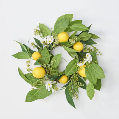 Create an accountGive your Spring decoration a bitterweet look with this lemon wreath. Sitting on a natural twig base, this wreath features realistic looking lemons, white flowers and green leaves. Perfect to hang at a door or wall to welcome guests.