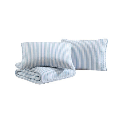 Create an accountDesigned with a relaxed and casual feel, Nautica's Coleridge Stripe Quilt Set features subtle stripes in light chambray blue on a white ground. This quilt sham set is not only easy to maintain and care for, but also machine washable. The rounded corner shams provide a soft sensibility that features the reverse print into the bound edges. For easy removal, the shams are made with a 2 piece back closure. Featuring quality cotton construction, this set is both lightweight and prewashed for an extra soft feel. Our cotton/polyester blend fill is crafted for durability.