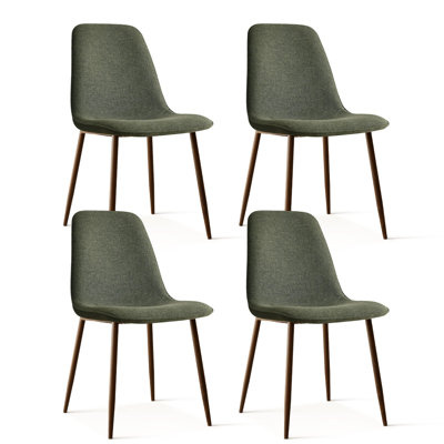 Create an accountArriving as a 4-piece set, this side chair is ready to accommodate friends and brunch guests. An engineered wood frame rests on four angled, tapered metal legs with a wood-look finish for a sleek modern vibe we love. The scoop seat and back are wrapped in polyester and filled with foam to provide just the right amount of support as you sit. Bonus: Rubber pads on the feet help to prevent scratching and scuffing of floors. Each chair in this set has a weight capacity of 250 lbs.