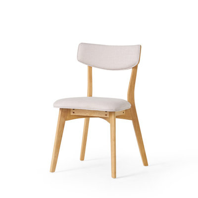Create an accountMake a boldly modern choice for your dining room with this 2-piece set of side chairs. Each one is crafted from solid rubberwood with a dynamic finish of your choice to suit your space's style and color scheme. A soft, curved silhouette is complemented by splayed legs for a bit of mid-century charm. The seat and backrest are wrapped in textured upholstery and generously padded with foam for just the right amount of support. Can accommodate up to 300 lbs.