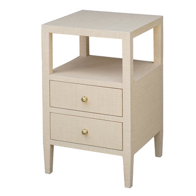 Create an accountWith its sophisticated form and subdued texture, the Roscoe side table brings style and elegance to any room. Two drawers with petite brass pull sit elegantly beneath an open storage shelf. Finished in natural grasscloth, it's the perfect accompaniment to your favorite chair.