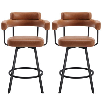 Create an accountThis 2-piece set of swivel 26'' faux leather counter stool gives you a place to enjoy breakfast around your kitchen island or your favorite beverage at your home bar. The ergonomic curved back and a soft padded seat & arms are wrapped in luxurious PU leather and filled with high-quality foam. Each stool has square tubular steel legs finished in matte black. Round steel footrests provide additional stability. The seat swivels 360 degrees, allowing you to freely switch directions depending on your seating position while chatting. Best of all, these counter height bar stools can support up to 320 lbs.