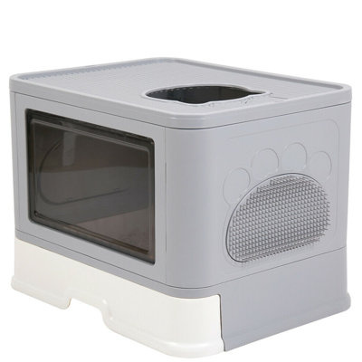Create an accountThis litter box enclosure offers a functional solution for pet care with a streamlined, rectangular silhouette. Its plastic frame features an enclosed design to help contain messes and manage odors within the home. A clear pet door provides easy access for your cat while maintaining a tidy appearance in your living space. The integrated sifting pan and built-in scoop streamline daily maintenance for a more efficient routine. We also love that the textured side panel serves as a grooming surface for your pet.