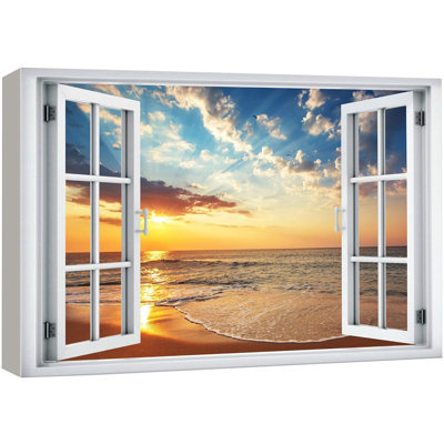 Window Scenery Coastal Vibrant Sunset Beach Shore Nautical Decor Photography on Canvas Print Wall Art